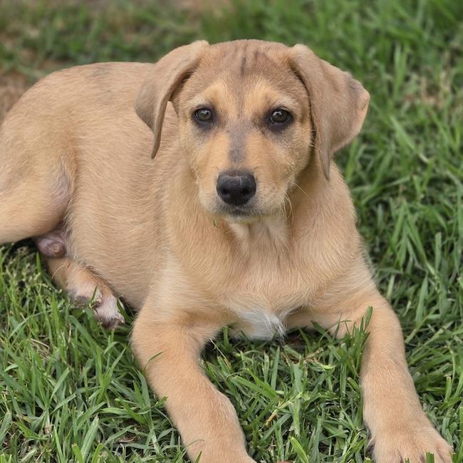 Meet Burley! He is around 2.5 to 3 months old and we believe he is a Lab and Wirehaired Terrier or Labradoodle mix. His father was a yellow Lab and his mom was a Doodle, Terrier and Hound mix. Burley is a big boy with big paws and a wiry coat. He is sweet, playful and loves all dogs and people.