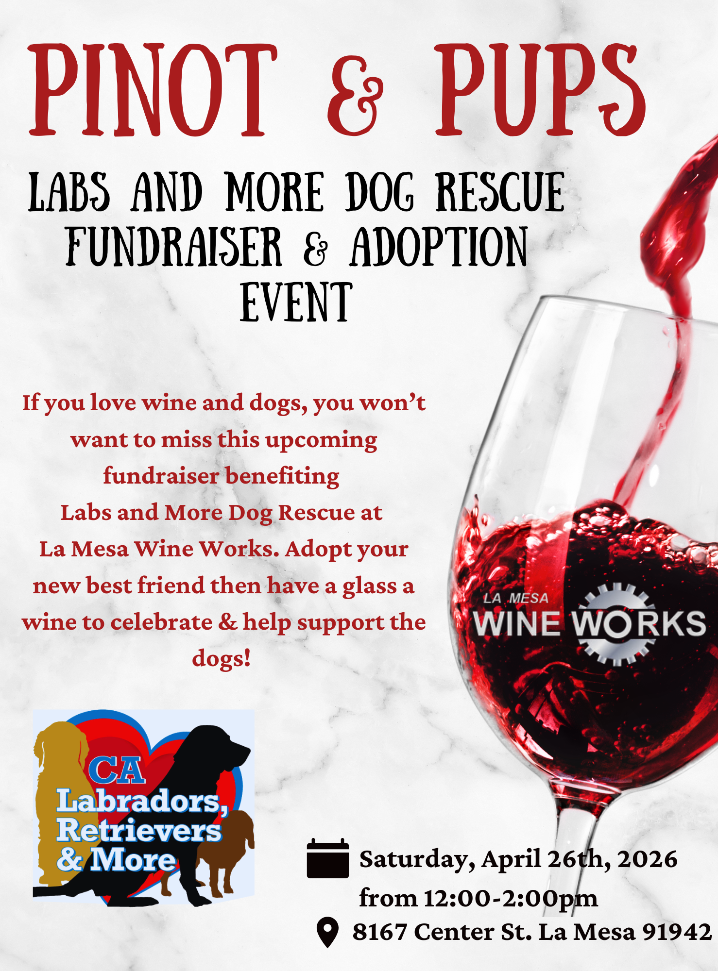 Labs and More Fundraiser & Adoption Event If you love wine and dogs, you won't want to miss this upcoming fundraiser benefitting Labs and More at La Mesa Wine Works! […]